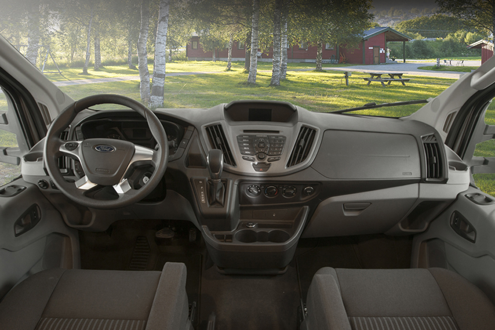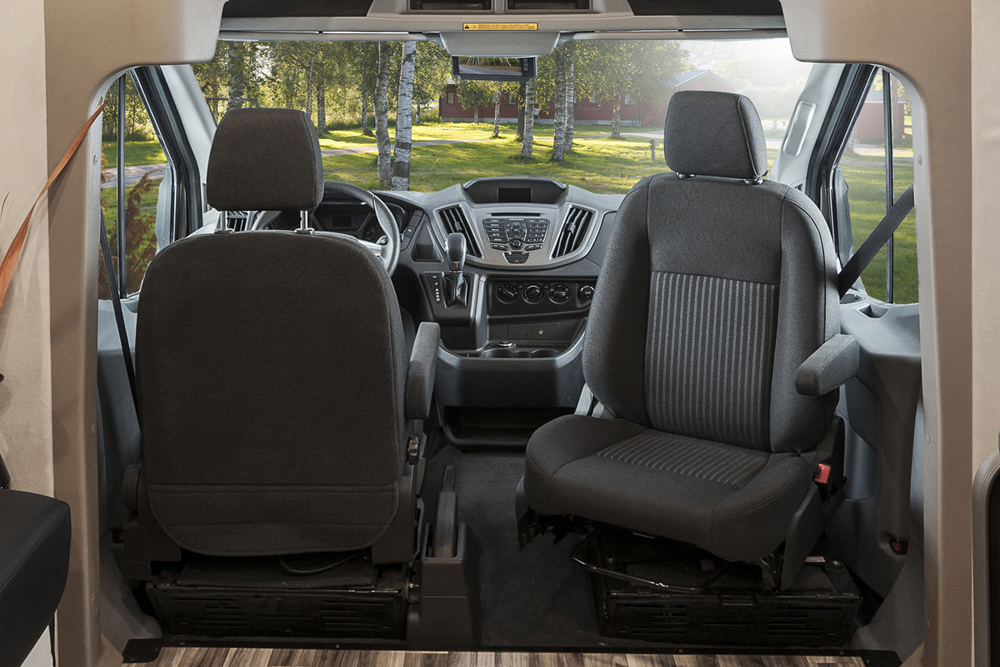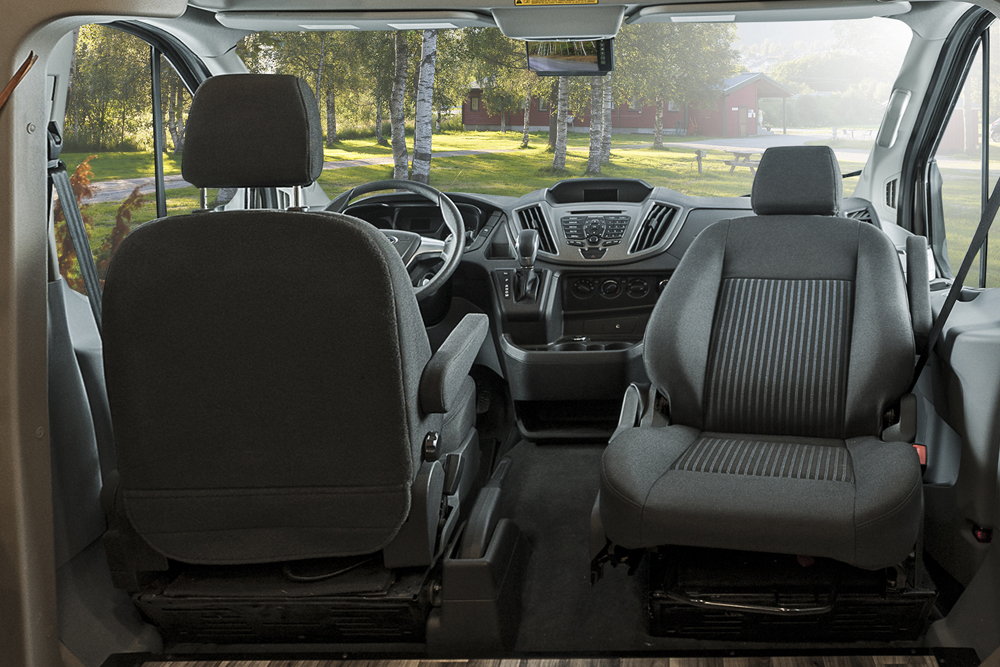 フューズのベースシャーシ、Ford Transitはコモンレールインジェクション、トルクフルな直列5気筒ターボディーゼルエンジンが搭載された新型モデルです。トラクションコントロール、ヒルスタートアシストやドライビングアラートなとの安全機能が数多く装備されています。助手席は、回転・リクライニング機構に加えシートクッション位置を高くすることによりキャブとコーチの段差を解消できるシートブースターが装備されています。